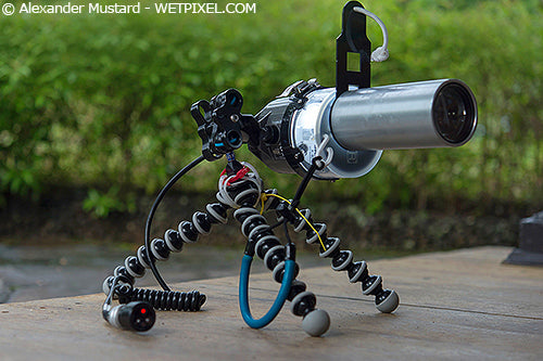 The main equipment you need for off camera strobe work are a tripod (I use a plastic Gorillapod-SLR) with a mounting ball, so you can clamp the strobe to it. To trigger the strobe, you can often just get away with the strobes own optical sensor, for this type of shooting. However, here I am using a cable and Triggerfish slave sensor for more control.