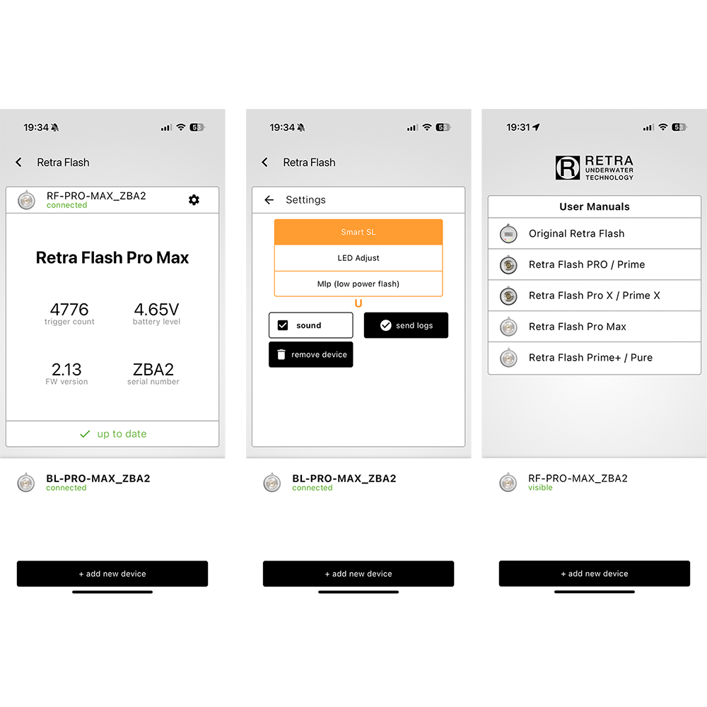 The Retra Flash Pro Max can connect to your smartphone via bluetooth with the Retra UWT app.