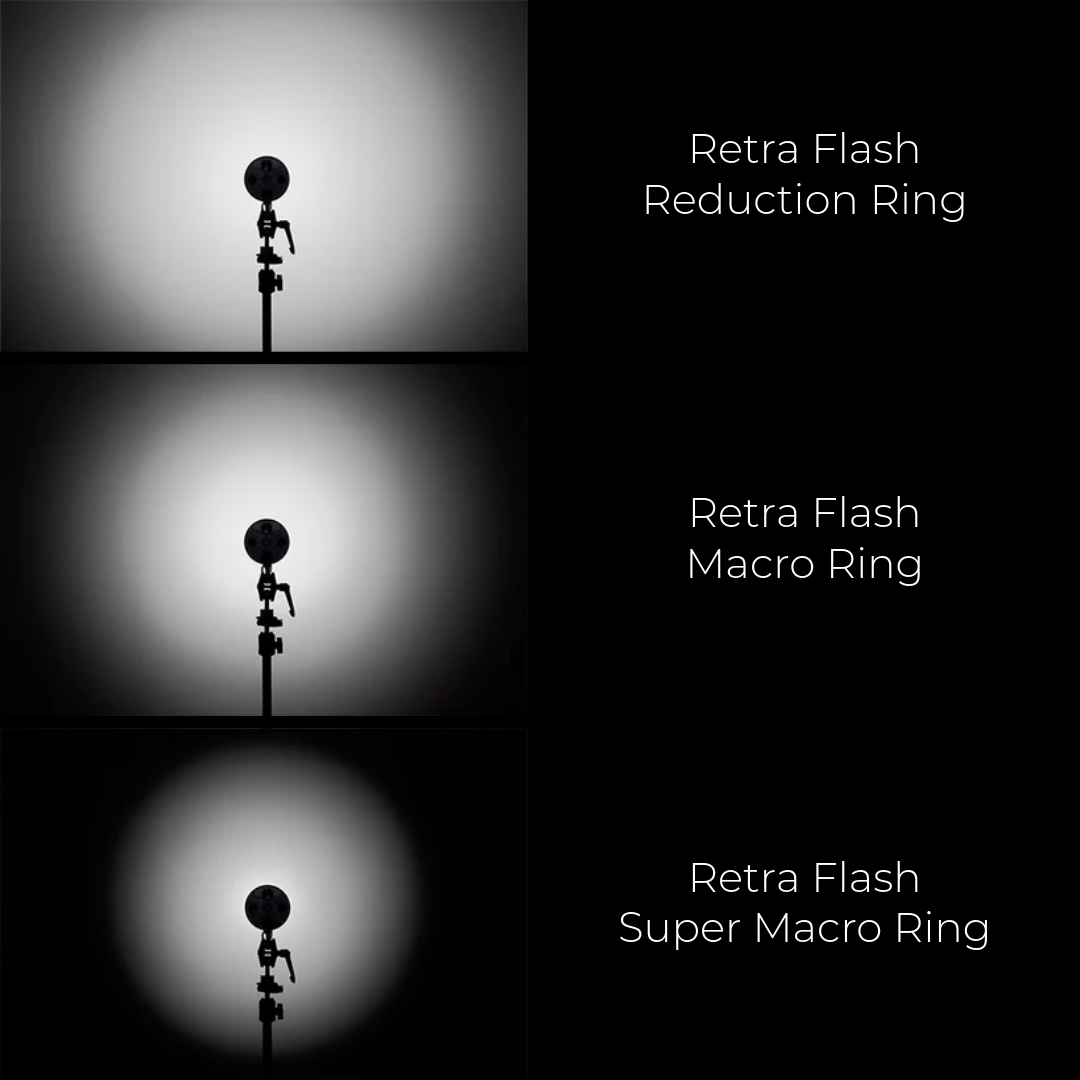 The macro and super macro rings reduce the angle of light on the Retra Flash and are perfect for getting up close and personal with your subject.